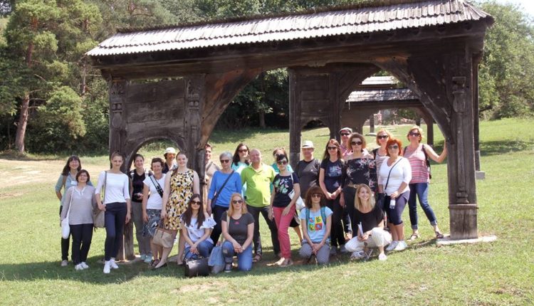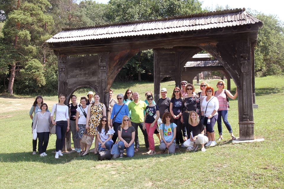 Az Insights projekt keretében Hargita megyében megszervezett partnertalálkozón ellátogattunk Szejkefürdőre a Haáz Rezső Műzeum gondozásában levő szabadtéri Székelykapu-múzeumhoz, ahol a résztvevők ízelítőt kaphattak az Udvarhely térségi székely kapuk jellegzetességeiről. A fotó a kapusor legöregebb, 200 éves, fenyédi kapu előtt készült.